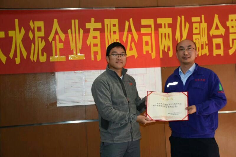 宣布,光大水泥公司兩化融合管理體系貫標管理者代表為鄭海銀先生,并頒布任命書。